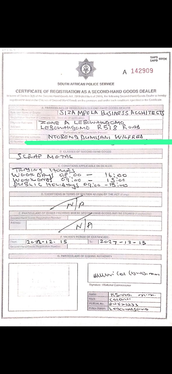 Taxi's; Vendors; Hawkers; Spaza/Tuck shops; Educational Institutions; Supermarkets; and etc.